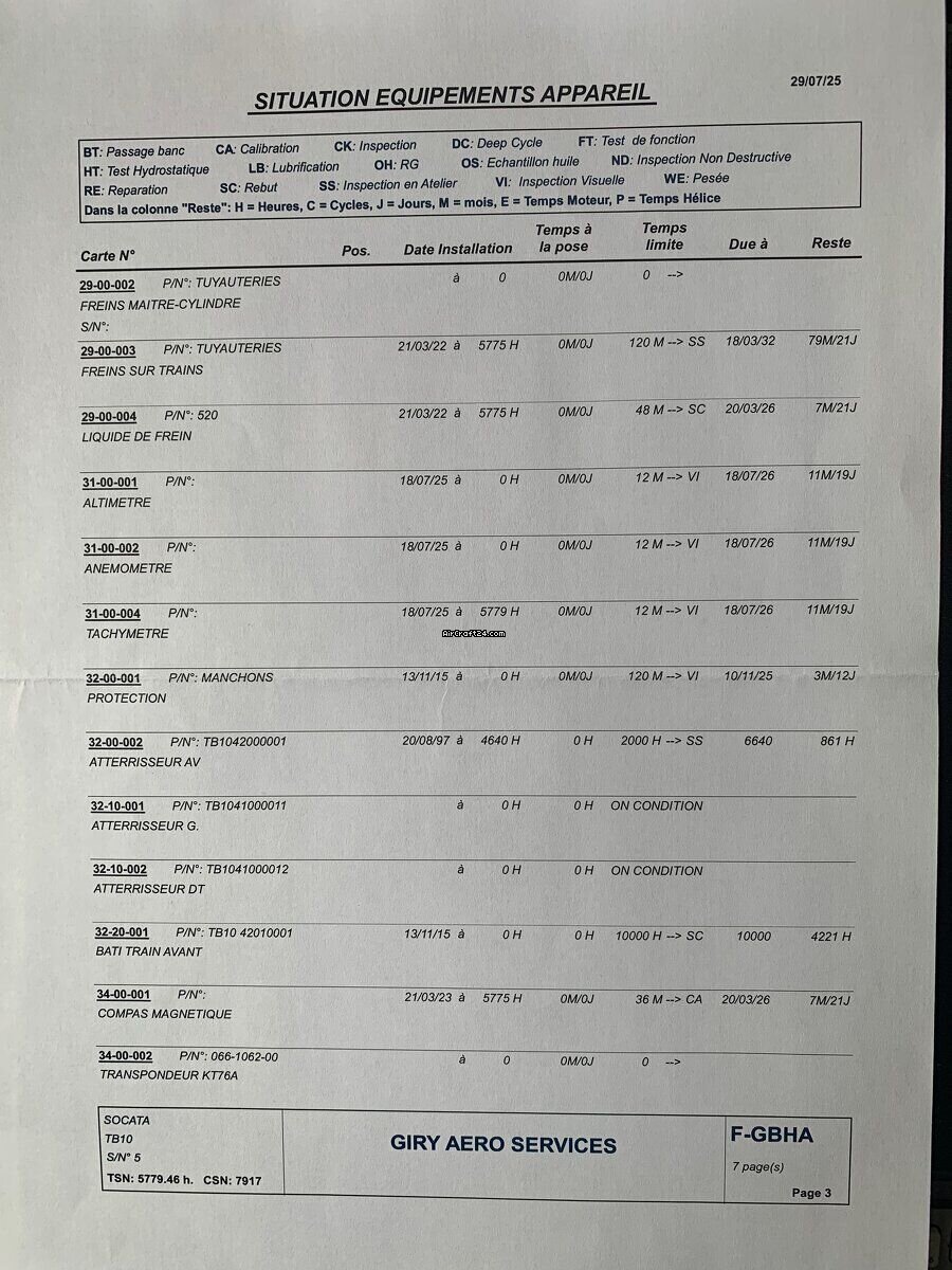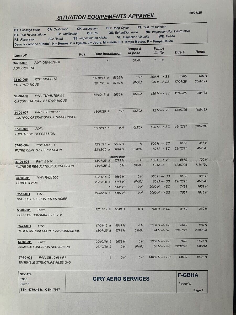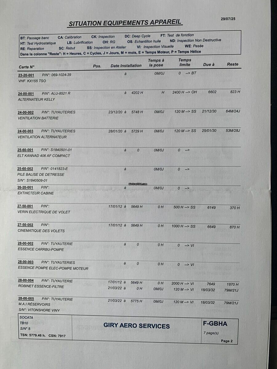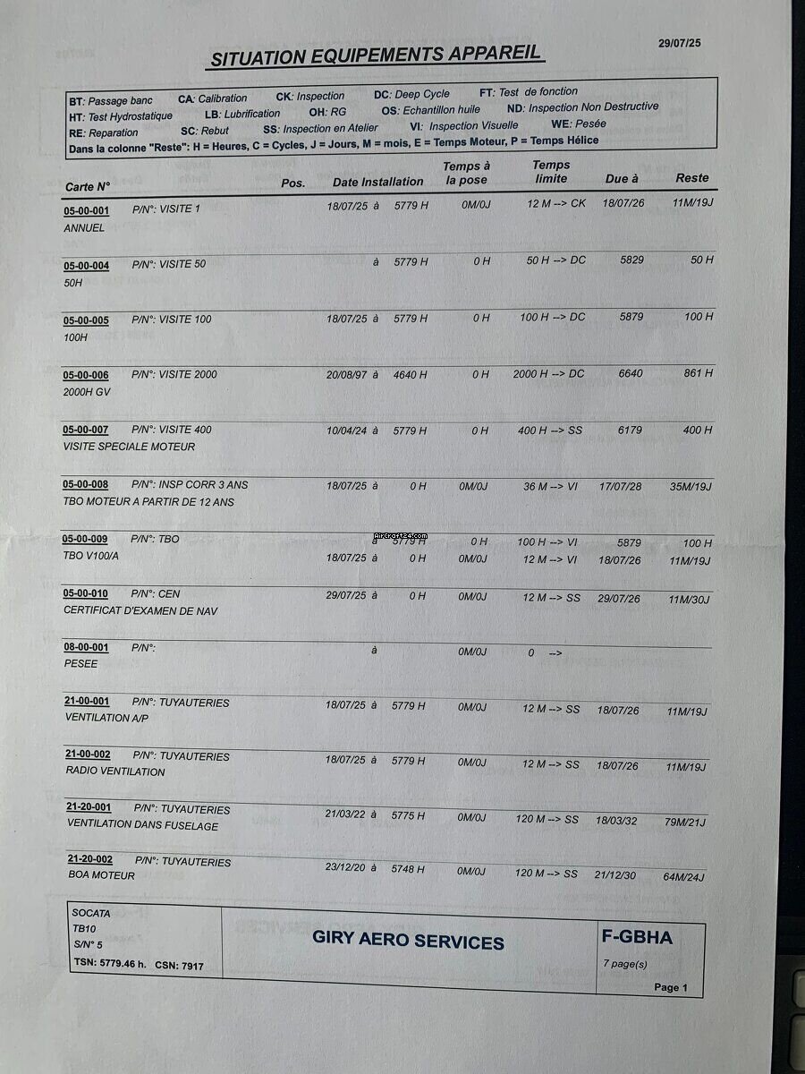 | Informacje podstawowe | | Typ: | Samolot jednośmigłowy | | Producent: | Eads/Socata | | Model: | TOBAGO TB 10 | | Rok produkcji: | 1978 | | Nr. rejestracyjny: | F-GBHA | | Numer seryjny: | 0005 | | Cechy charakterystyczne: | Zawsze hangarowany | | Przegląd: | 5/2025 | | Lokalizacja: | Francja, Gueret, LFCE | | Całkowity czas (TTAF): | 5779 h | | Cena: | € 42.000 (~ zł 178.038) | | Opodatkowany w UE: | tak | | Wszystkie szczególy |