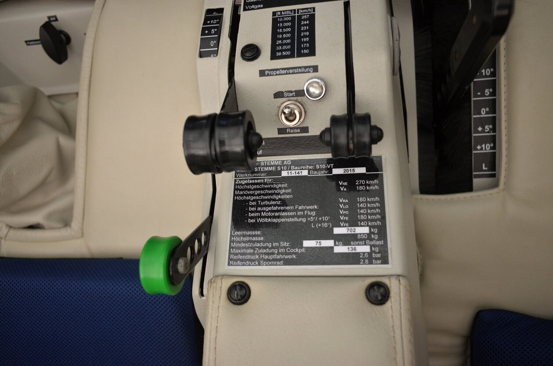 | Inne uwagi | | Das Flugzeug wurde vor 2 Jahren in der Halle stehend durch abstürzende Trümmerteile eines UL Flugzeuges beschädigt. Alle Schäden wurden seitdem durch die Firma Stemme fachgerecht instandgesetzt. Die Kabinenhaube ist neu. Das Flugzeug ist eine der letzten S10 und wurde initial in die USA als Demonstrator/Messeausstellung mit "Vollausstattung" verkauft. |